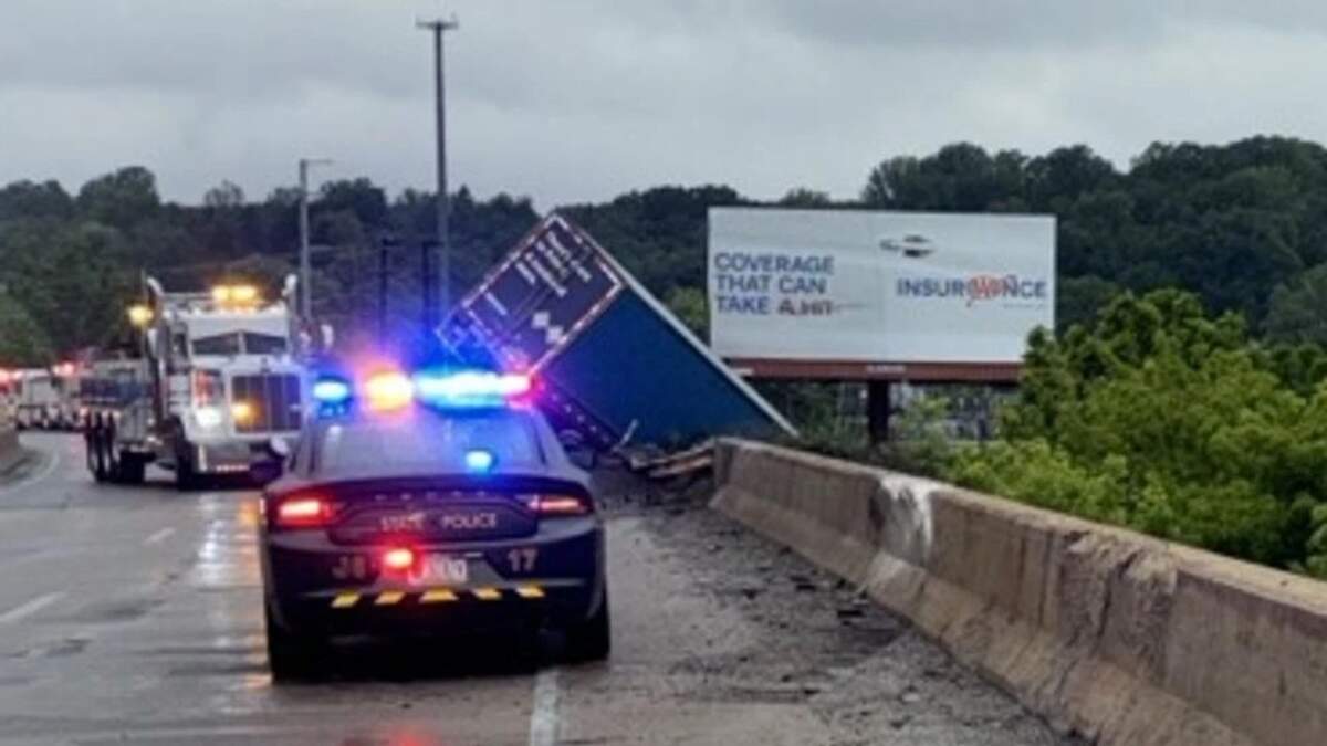 Part of Interstate 83 in York, Pennsylvania, was shut down Sunday evening (June 8) after a dramatic crash left an 18-wheeler hanging off a bridge. The incident occurred near the Market Street exit, Exit 19, in East York. According to 511PA, the crash was reported around 6 p.m., and a PennDOT spokesperson confirmed that the tractor-trailer was left dangling over a rail yard from the end of a concrete bridge.